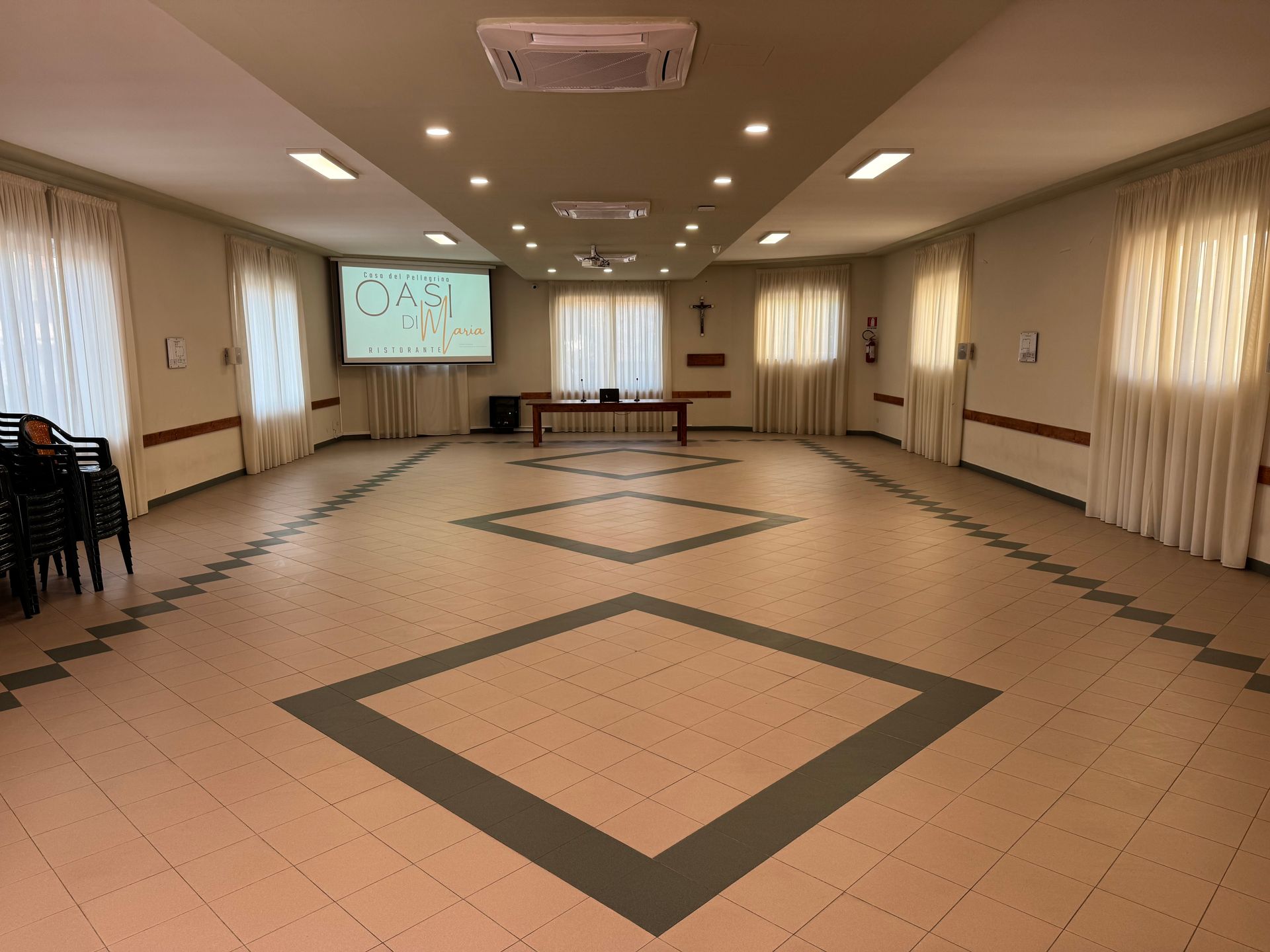 L’ampia e luminosa Sala Ristorante dell’Oasi di Maria è dedicata ai gruppi che trascorrono i loro giorni di preghiera all’Oasi di Maria, e con i suoi piatti ricchi e gustosi, rende ancor più piacevole le pause fra le varie attività religiose.